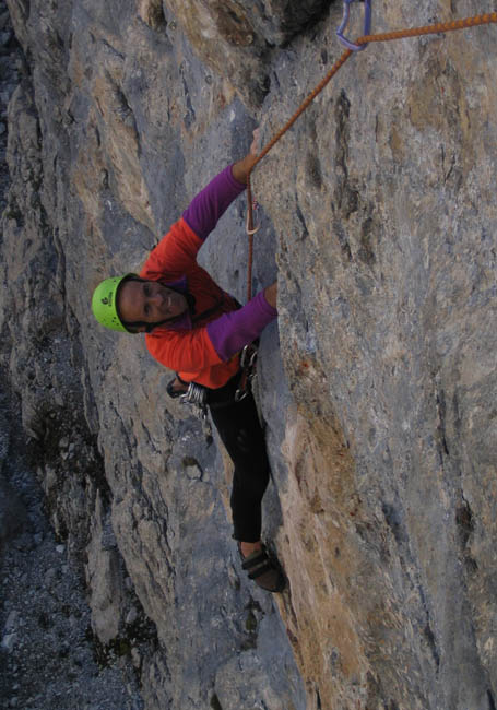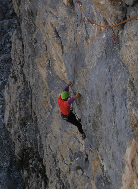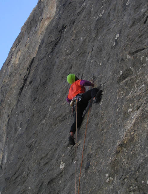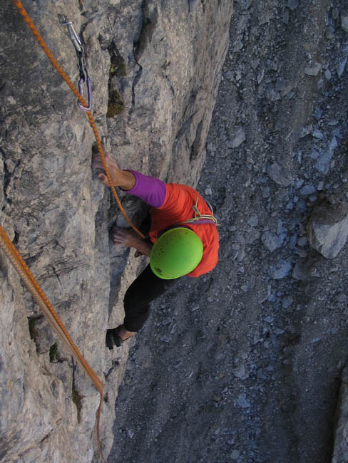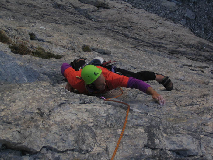 unten rechts: die 4. Seilänge bringt anhaltend tüftelige Kletterei, für Zapfenverhältnisse schon fast Plattenkletterei