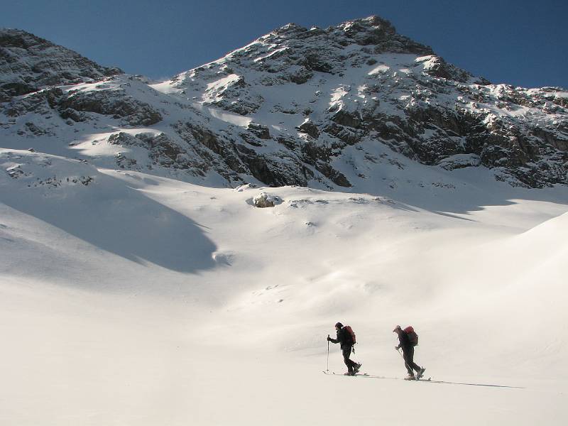 Leider ergab sich just zur Abfahrt ein großes Quellwolkenpaket, so dass wir im eigentlich perfekten Pulver bis zur Schießmauer keine Fotos mehr gemacht haben.