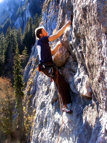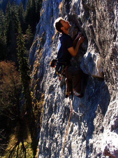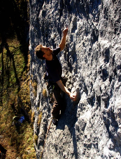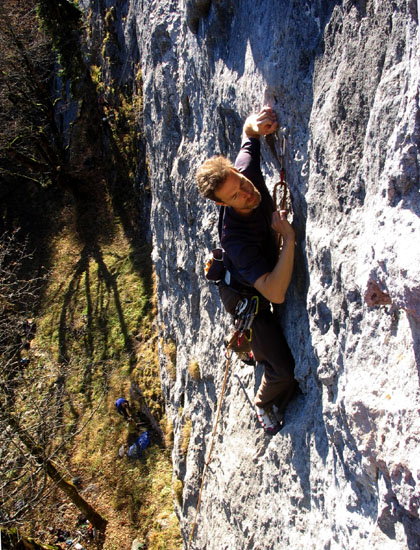 Nachmittagslicht un Markus Noichl in einem der schönen langen Wege (Redpoint Richi) im Sektor Monica und Bill. ((Man müsste da mal extra Fotos machen)