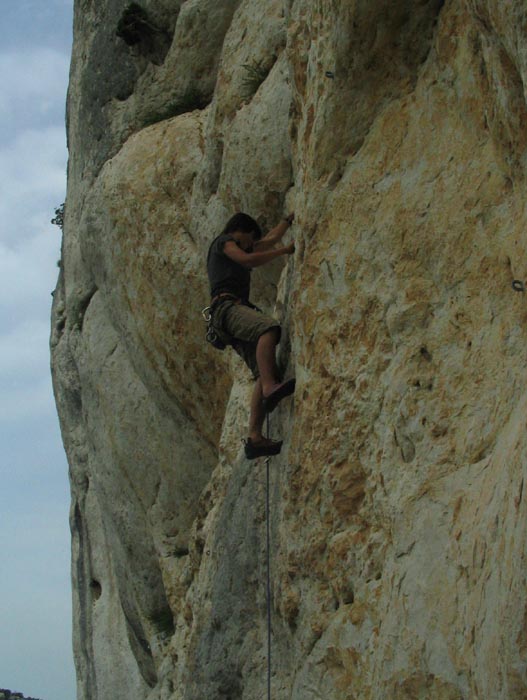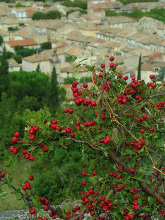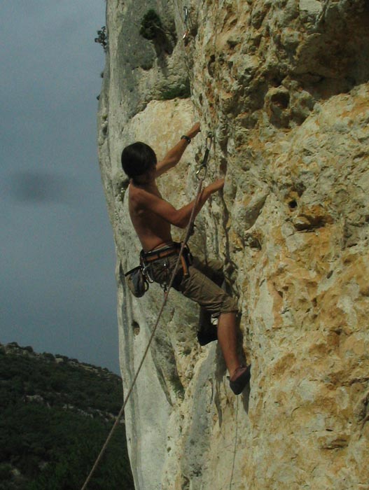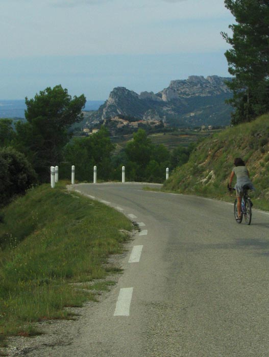 zurück in den Weinbergen um Malaucene verbringen wir noch einen Tag im löchrigen Fels des Klettergebietes gleich hinterm Ort (am Fuße des Mount Ventoux) und machen einen Abstecher mit dem Fahread hinüber in die Hügel Richtung Dentelles die Mont- Mirailles, dann heisst´s schon die Sachen packen. Über Vaison de las Romaines mit seiner romantische Altstadt auf dem Felshöcker geht´s wieder rüber ins Rhonetal und auf die Autoroute des Solaile, die uns wieder in Richtung Heimat bringt - wir kommen wieder