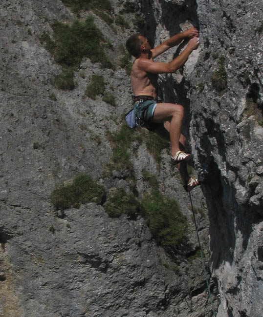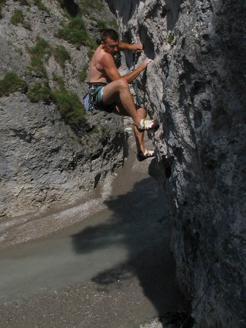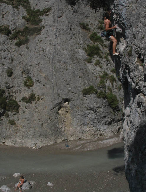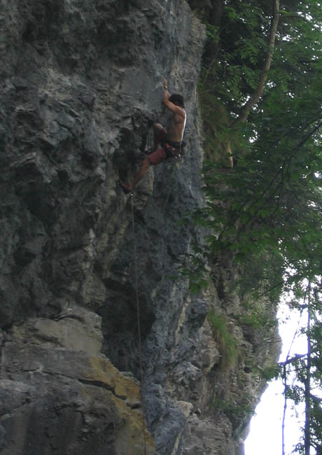 oben : in Lammi bei Meiringen (Berner Oberland), athletische Kletterei an meist sehr guten Leisten unten: am Gsperr bei Reutte, neben ein paar schönen Genußlängen auch eine athletische Route direkt am Bach