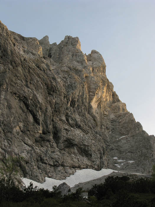 ganz rechts (nicht am Bild): Kosakentanz (Nr 37) 40m, 6+, eher plattig, nicht immer berauschender Fels, aber schon ok, etwas weitere Hakenabstände