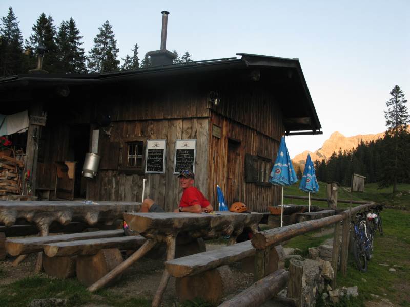 In der 4te Länge gelingt mir der schwere Zug nach dem Untergriff am letzten Hemd, gerade als der Fuß von der senkrechten Kante pfeift, kann ich oben in die Schale einrasten, der Nachsteiger hat´s an der Stelle eh unangenehmer. Durchs Ablassen vom Stand kann ich dann zwar Stefan sehen, aber nicht ganz so die Perspektive gewinnen, wie ich sie mir erhofft hatte. In der 5. SL ärgert michg die Plattenstelle am Anfang ganz schön und oben raus kommt man auch nochmal ins Schwitzen. Nach dem leichteren Zwischenstück wollen auch die 2 oberen Seillängen geklettert sein, irgendwie vertuschen die Ihre Steilheit durch die eher gegliederte Optik Ihrer Umgebung, nur die anschwellenden Ärmel sprechen eine andere Sprache. Auf der Gipfelwiese ist es dann ganz schön warm in der Sonne, wir verschwinden diesmal fast liebend gerne im Schatten der Nordwand zum Abseilen. dann wird zurückgewandert, die Nordwestwand des Niederstraußberg präsentiert sich im warmem Licht ganz anmachig, noch verlockender ist aber die Russenmaß vor der Jägerhütte, wo wir so lang hocken bleiben, bis wir fast noch in die nacht kommen im Abstieg.